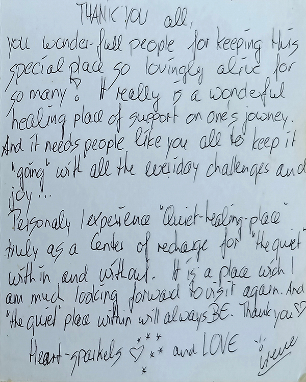 Please find below a selection of testimonials of people who have stayed at Quiet Healing Center.